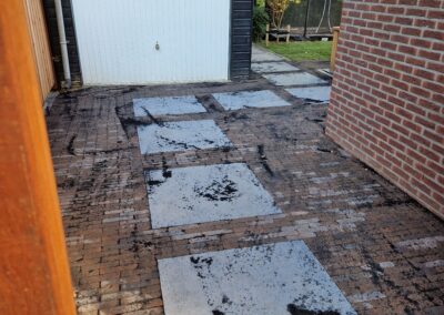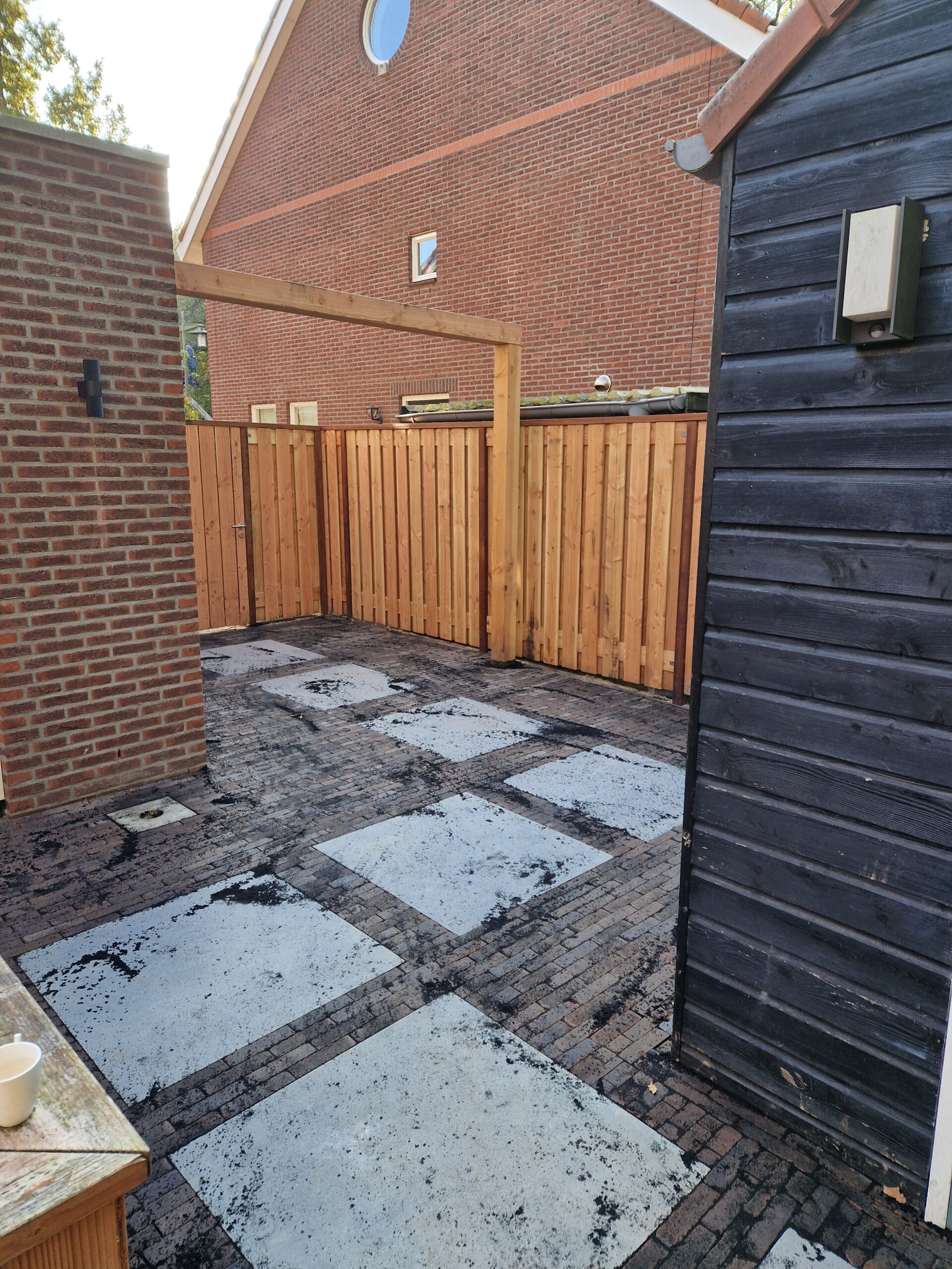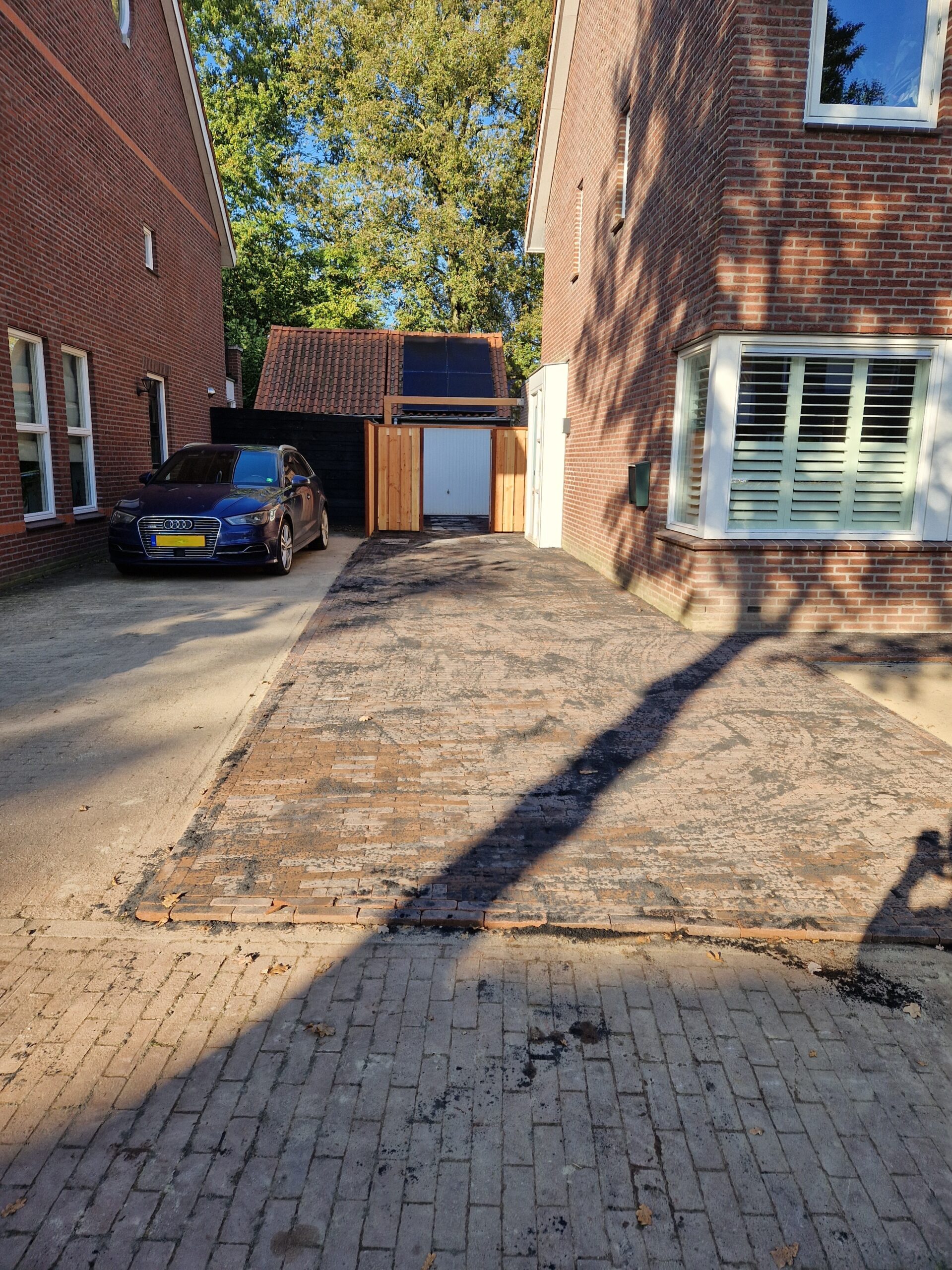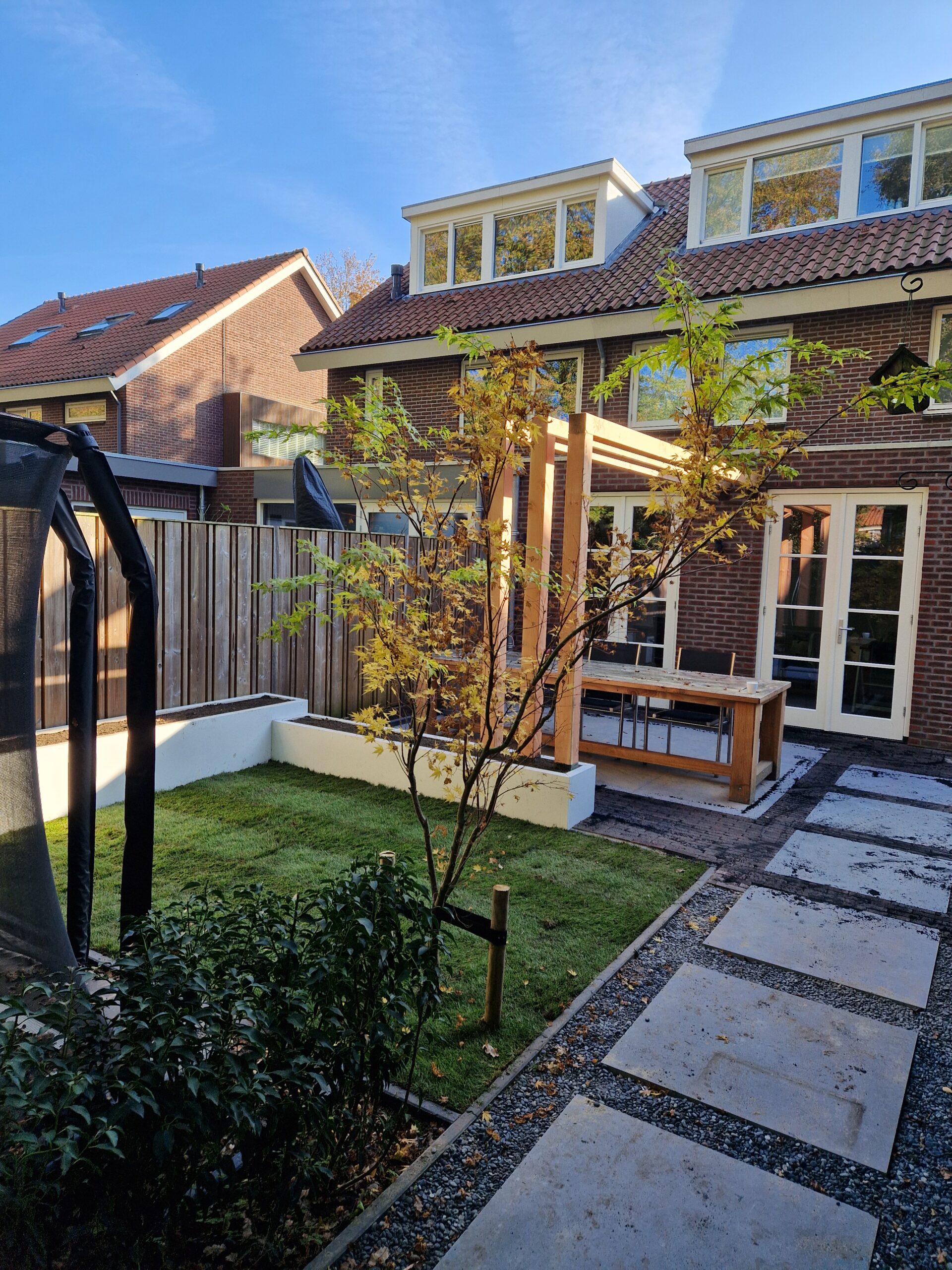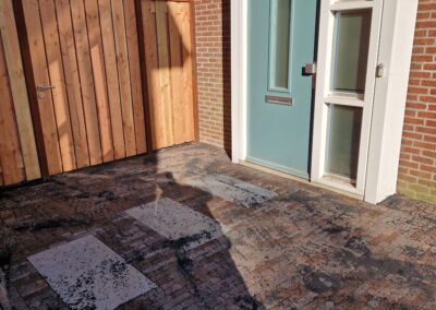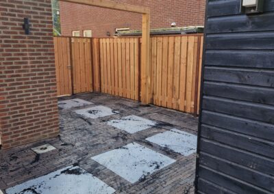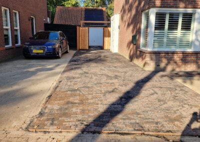 Wij hebben een mooie achtertuin en oprit aan mogen leggen in Ede met bestrating, gras en plantenbakken.